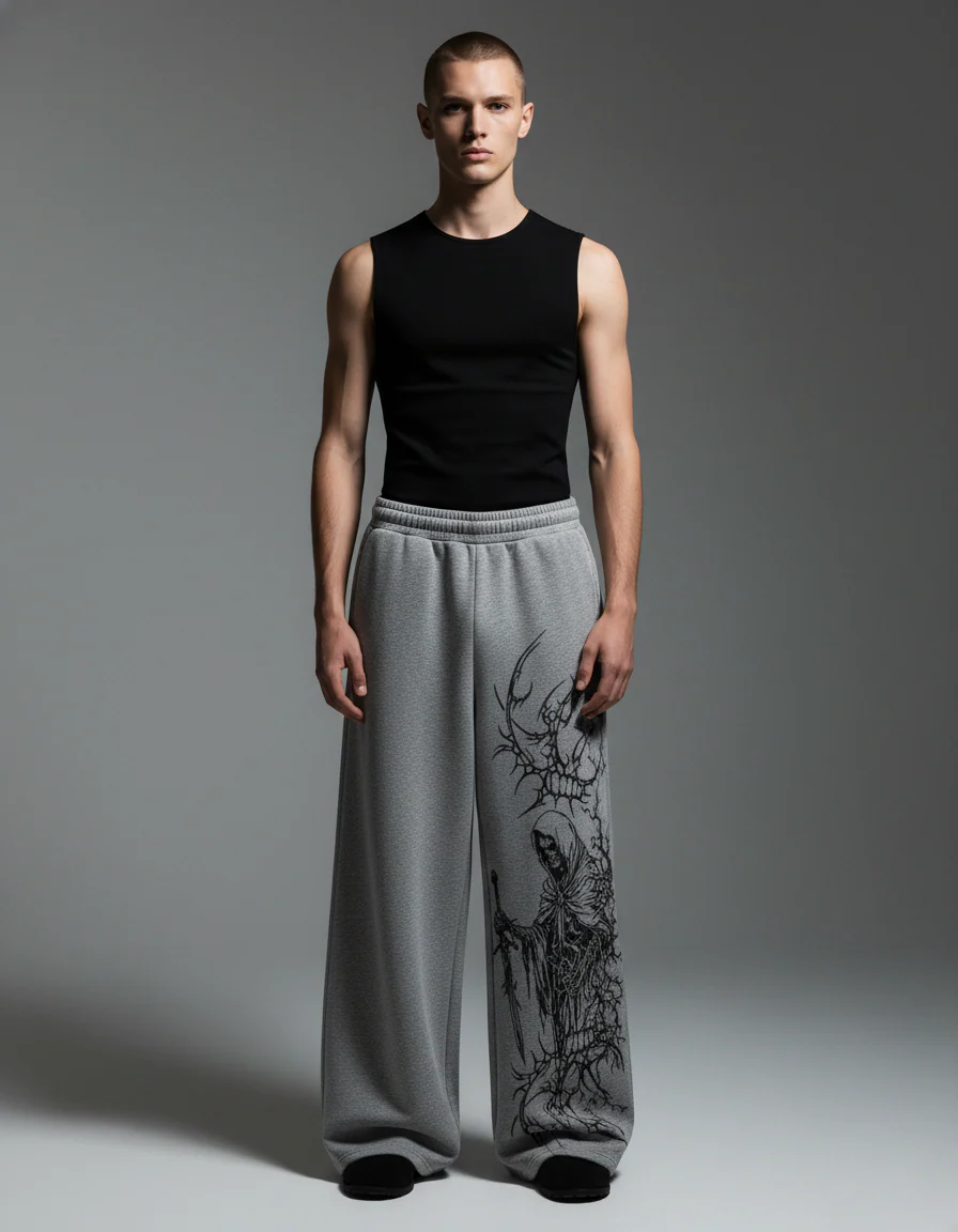 Duelist Grey Melange Unisex Straight Fit Baggy Pants